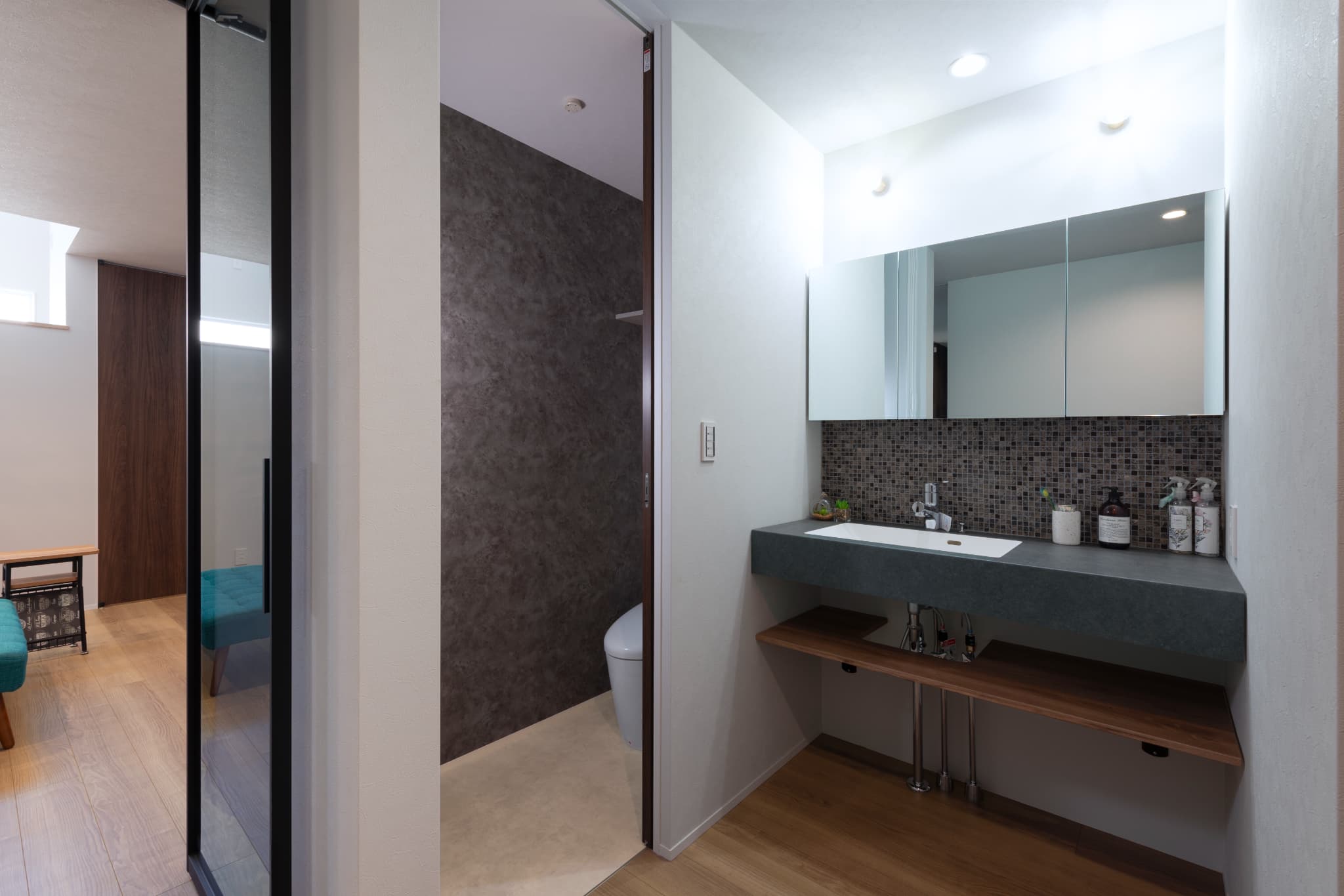 帰宅動線上に水回りを設け、効率的な動線を実現。