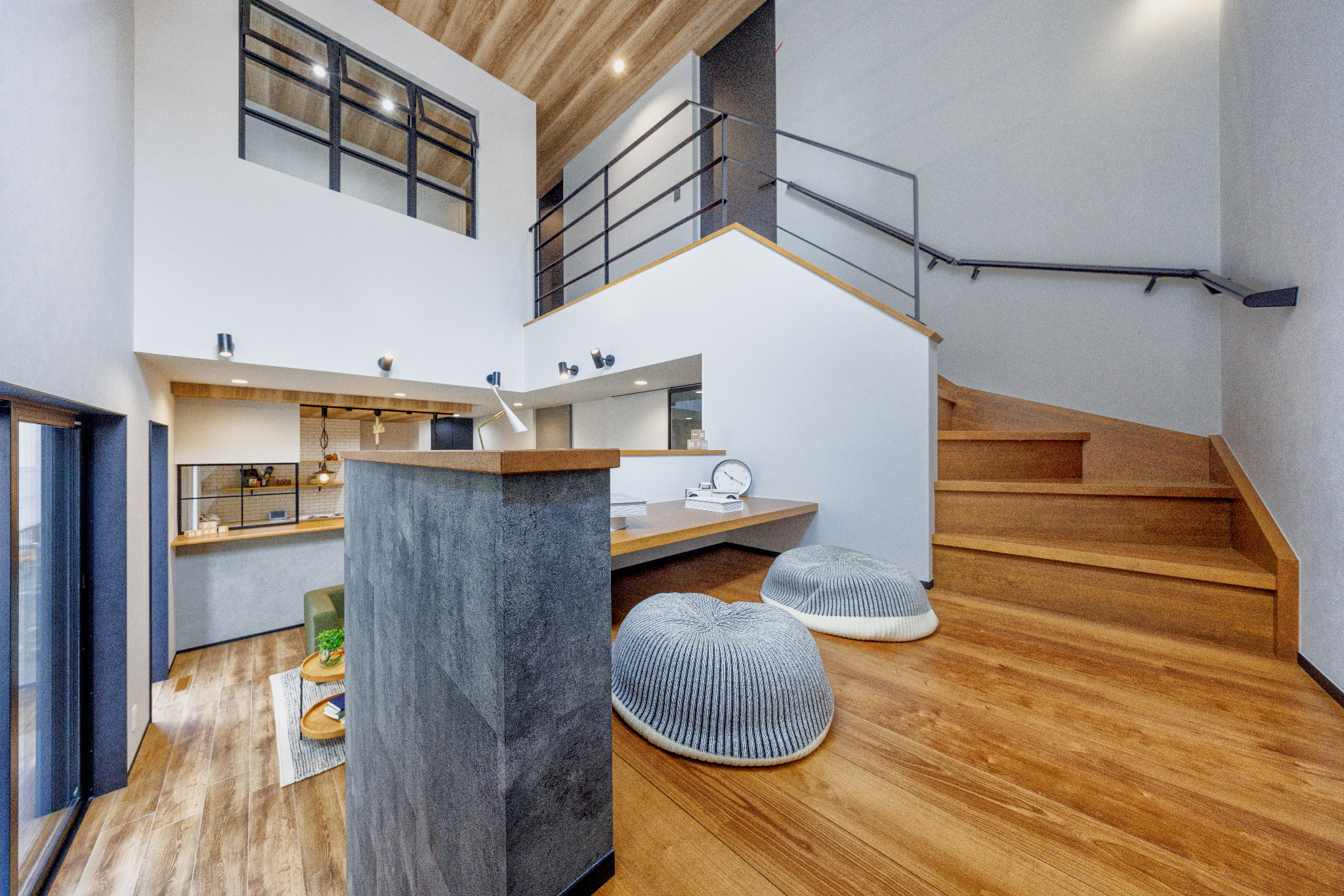 スキップフロア+吹き抜けで開放感のある空間へ。