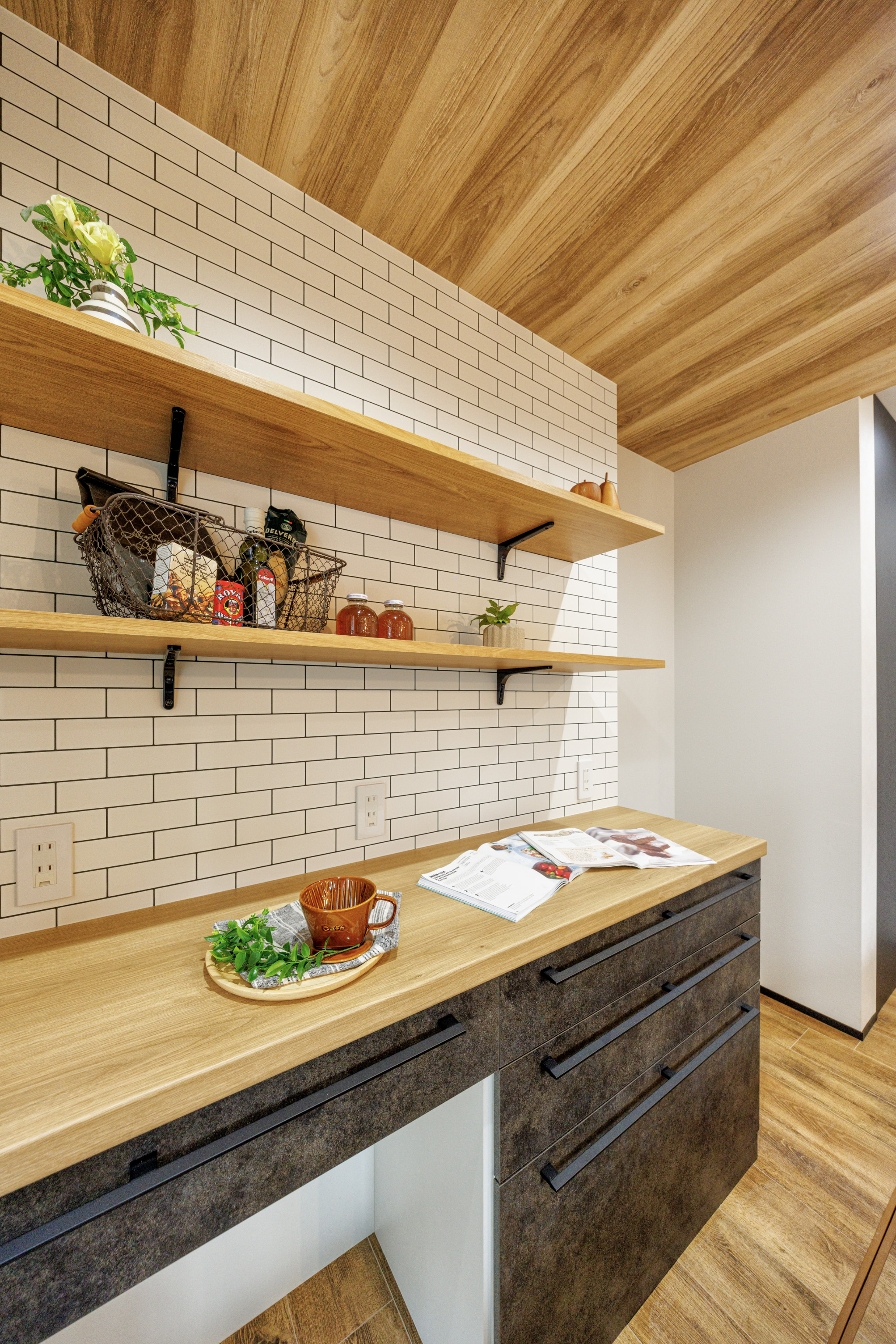 キッチン前のカウンターはダイニングスペースやお子様の勉強場所としても大活躍。さらに配膳のしやすさもあげられます。