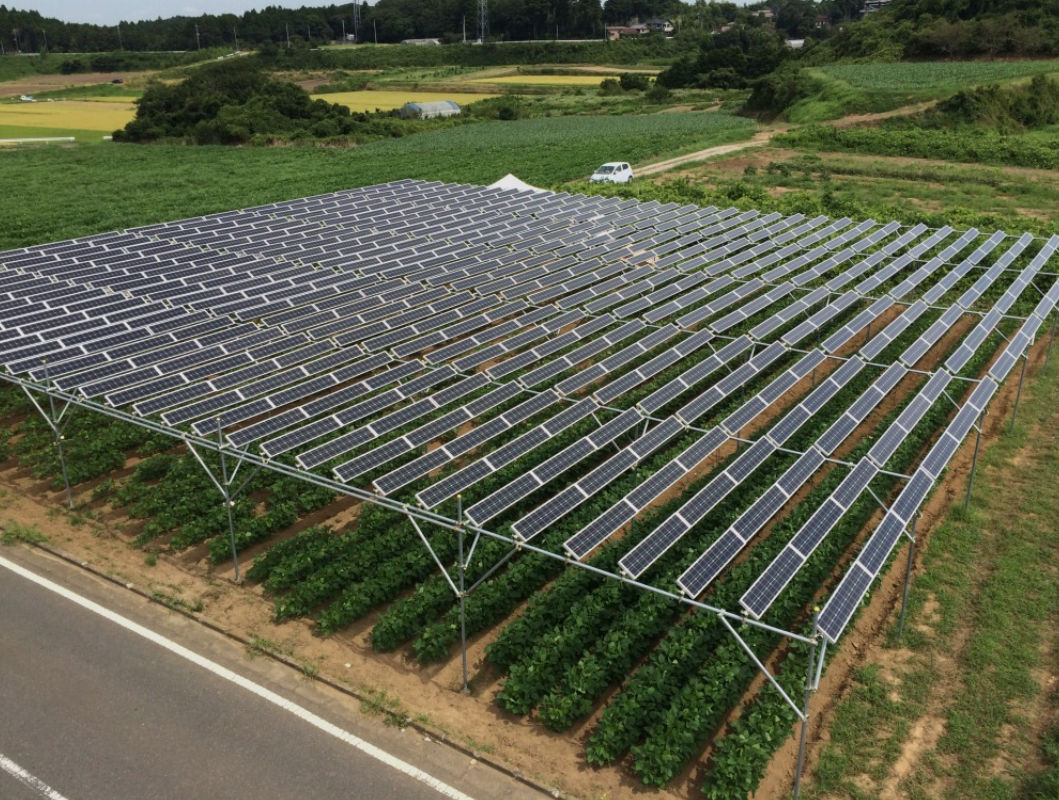 そして上から眺めると、何と太陽光パネルが畑にたくさん置いてありました!