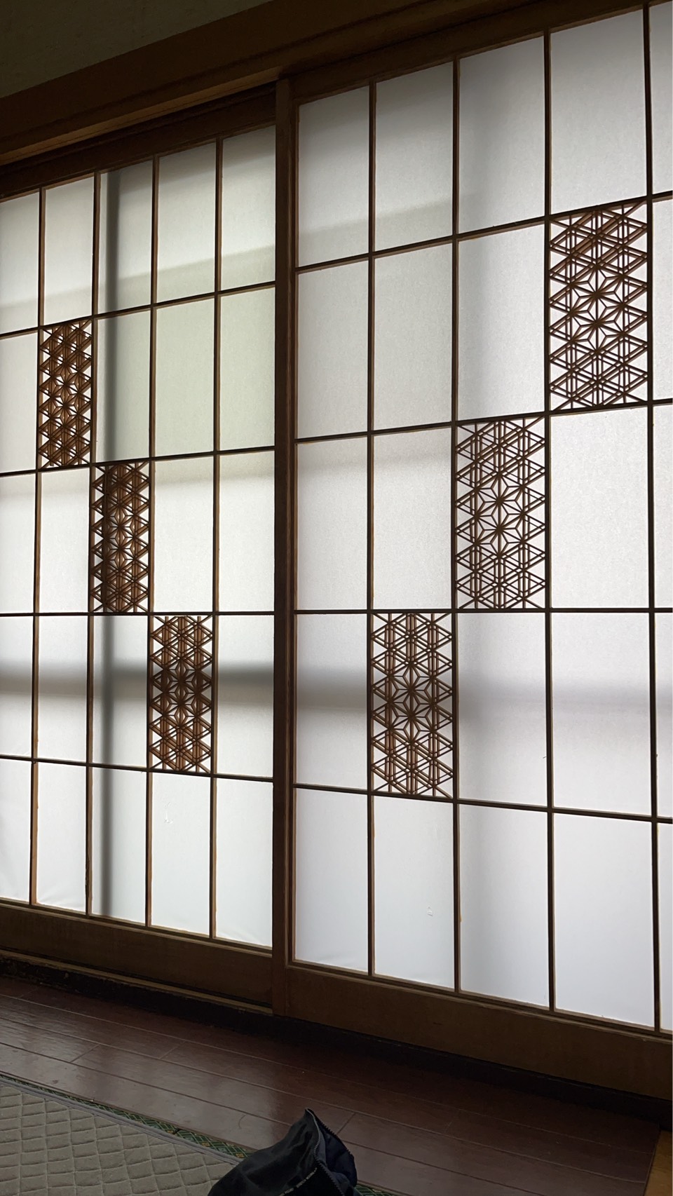 楽しいけど飾るところが無かったので実家の障子にはめました。