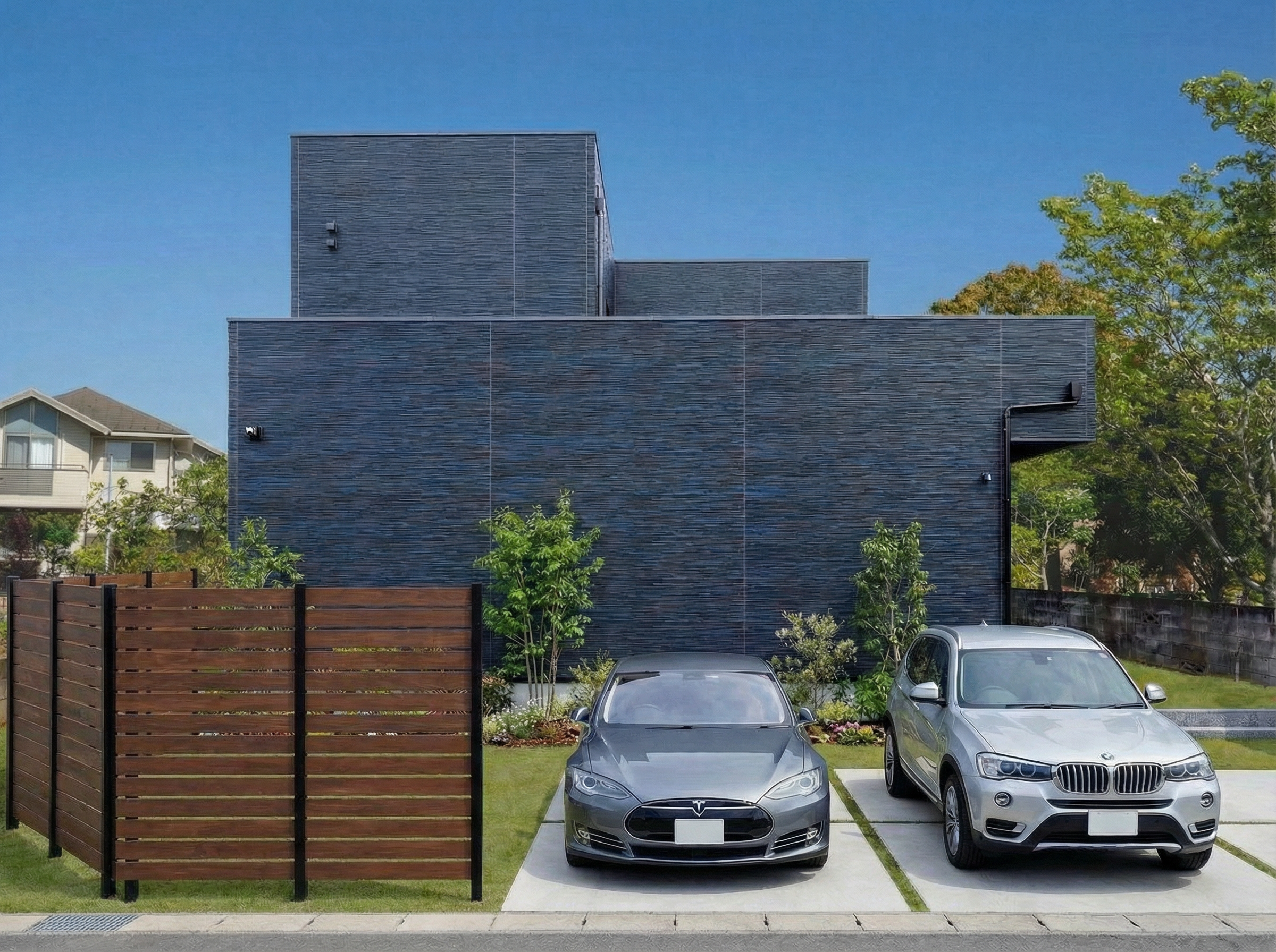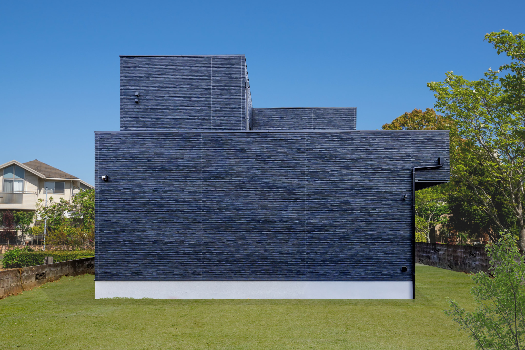 外観には窓がなく、モダンで洗練されたBOX型のお家。