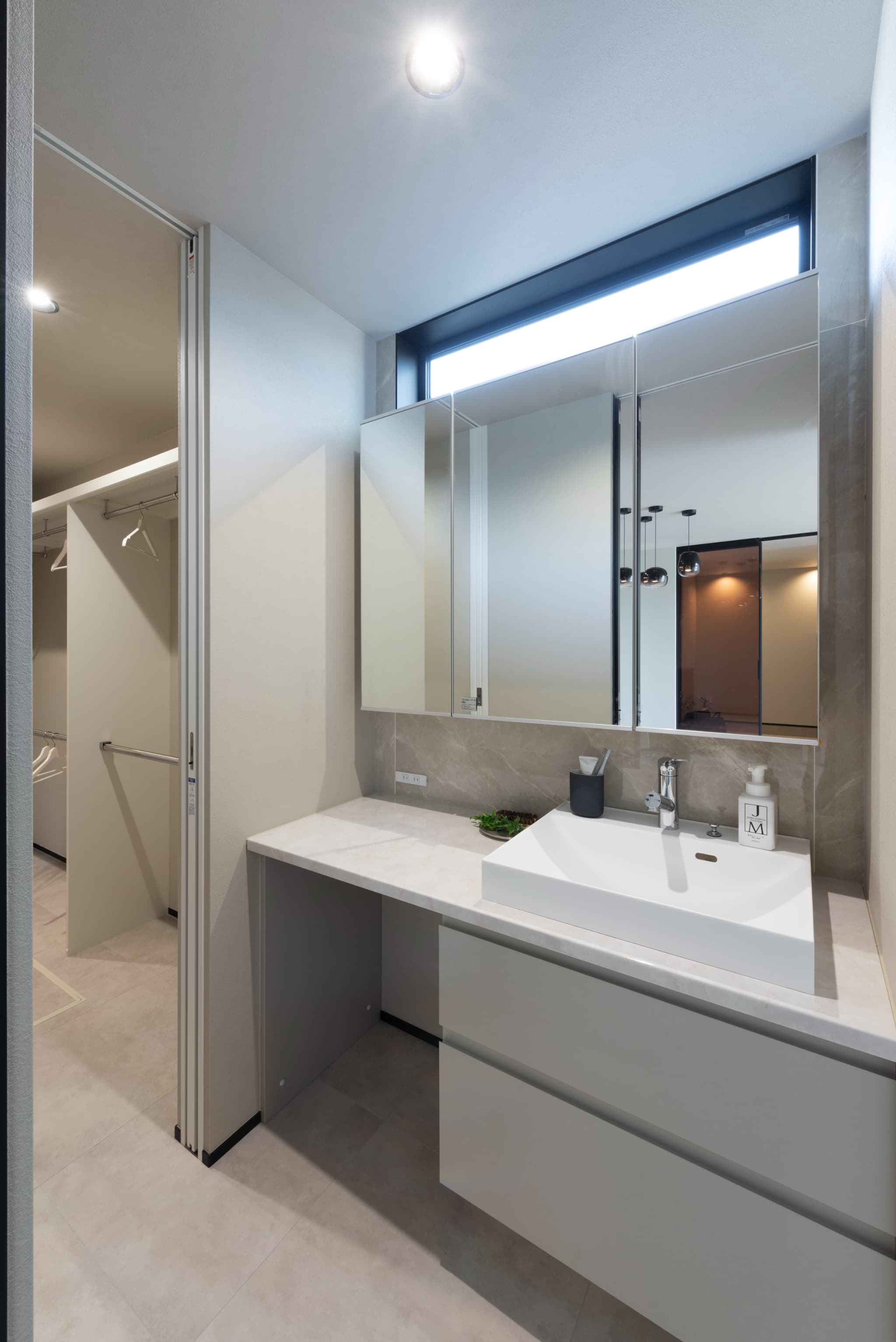 クローゼット内を人が通り抜けることができるウォークスルーにすることで、回遊性のある生活動線を確保。