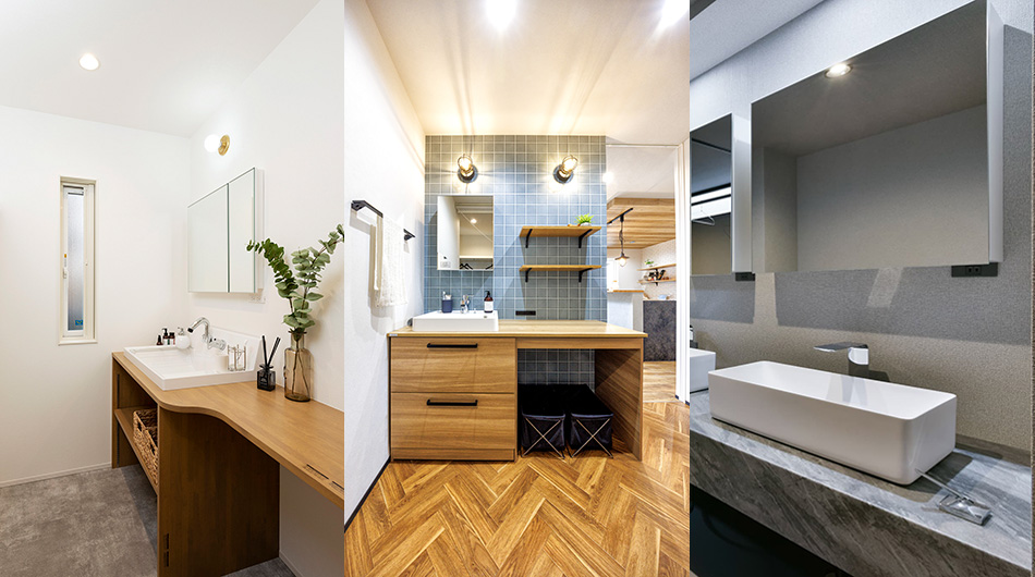身支度や家事で頻繁に使う場所だからこそ、広くて作業のしやすいボウルやお手入れ簡単な水栓を備えた洗面台をセレクト。 2人並んでもゆったり使える使い勝手の良さと、小物をすっきりしまえる収納力で、忙しい朝も快適にサポートします。