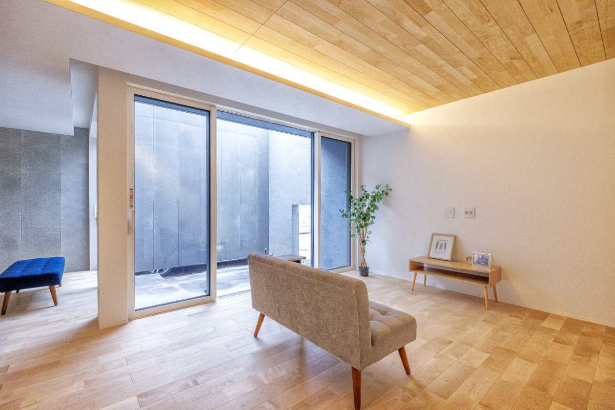 プライバシーを守りながら、光と開放感を内に取り込む設計です。