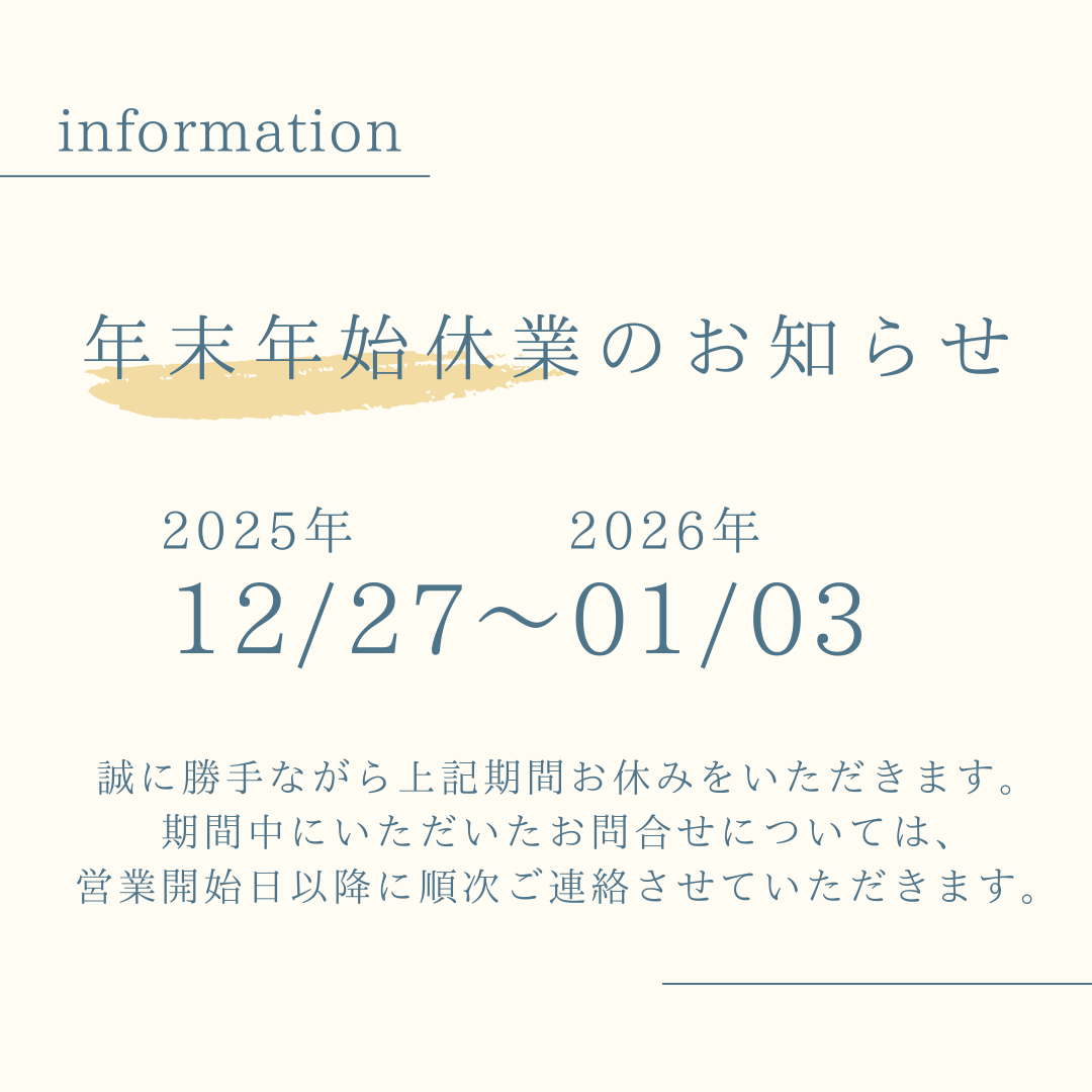 年末年始の営業についてお知らせいたします。