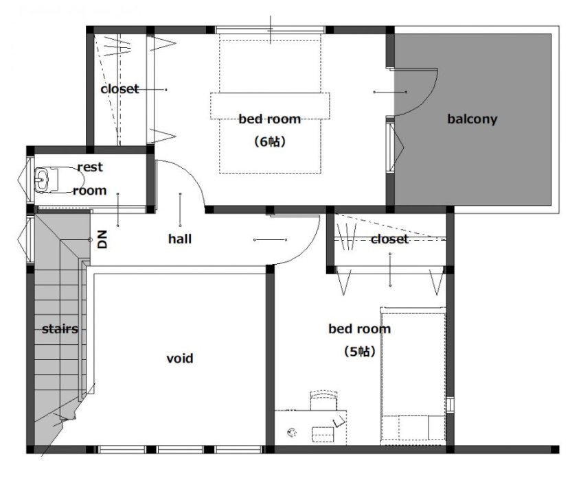 2階は将来の間取り変更も見据えたシンプルな構成で、無駄を削ぎ落とした美しさを追求。 「デザイン」「性能」「構造」。その全てにおいて妥協しない、まさに「家の正解」と言える一棟です。