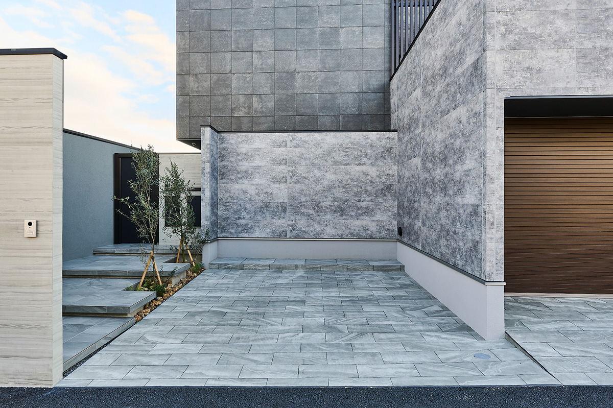 グレーを基調に、ブラックのタイルで引き締めたモダンな外観。