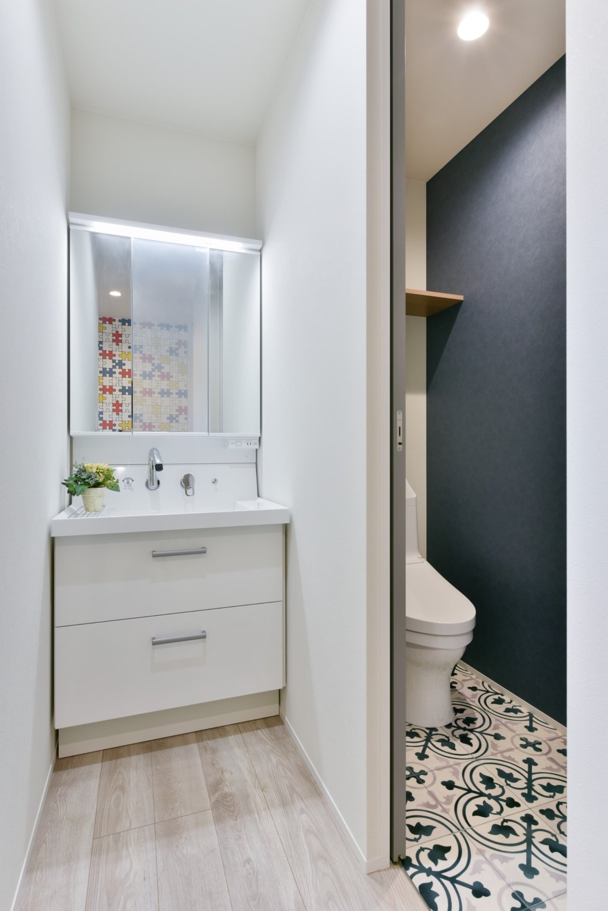 帰ってきたらすぐに手が洗える、ただいま動線を意識した洗面台
