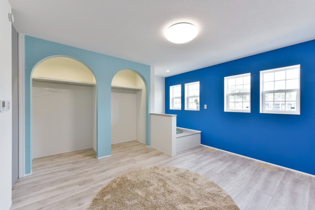 R型の開口で可愛らしさ演出したクローゼットがある主寝室