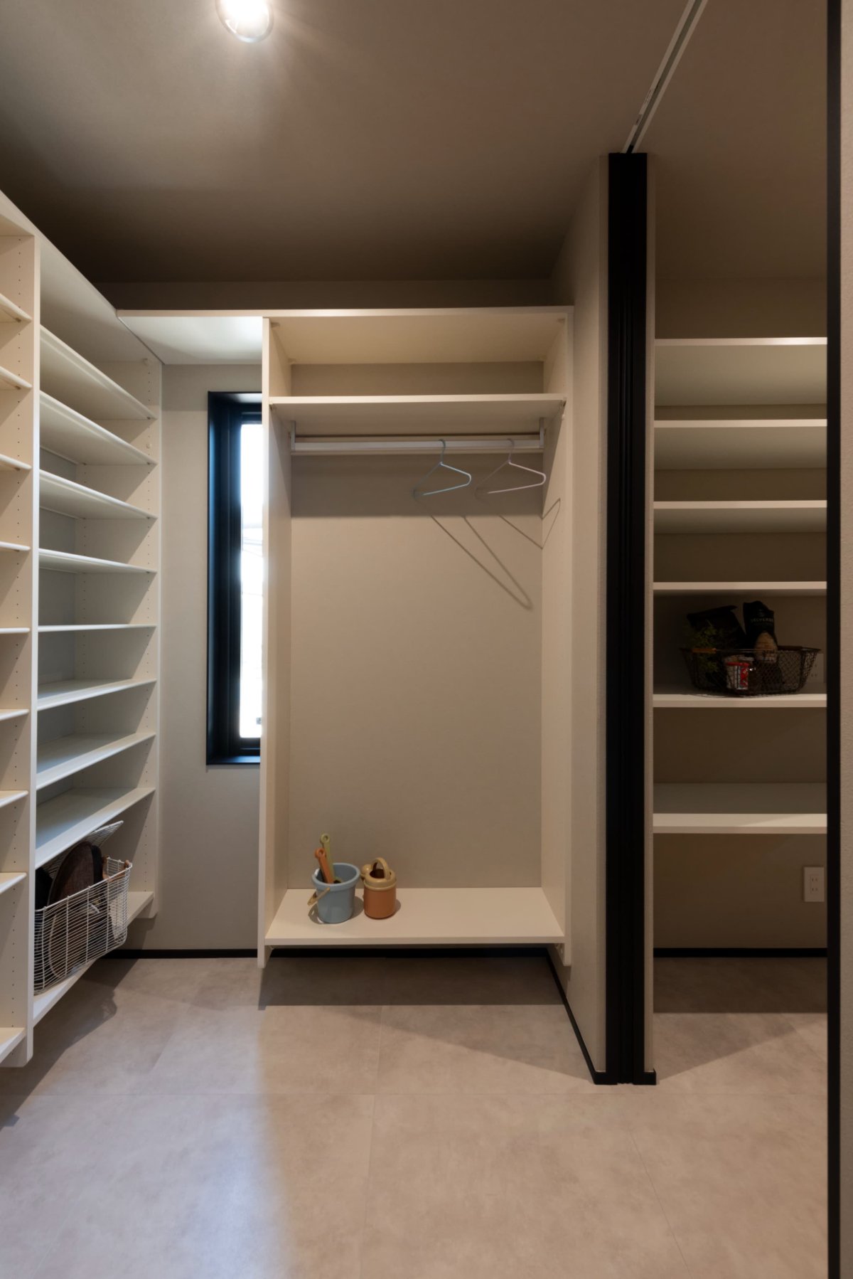 クローゼット内を人が通り抜けることができるウォークスルーにすることで、回遊性のある生活動線を確保。