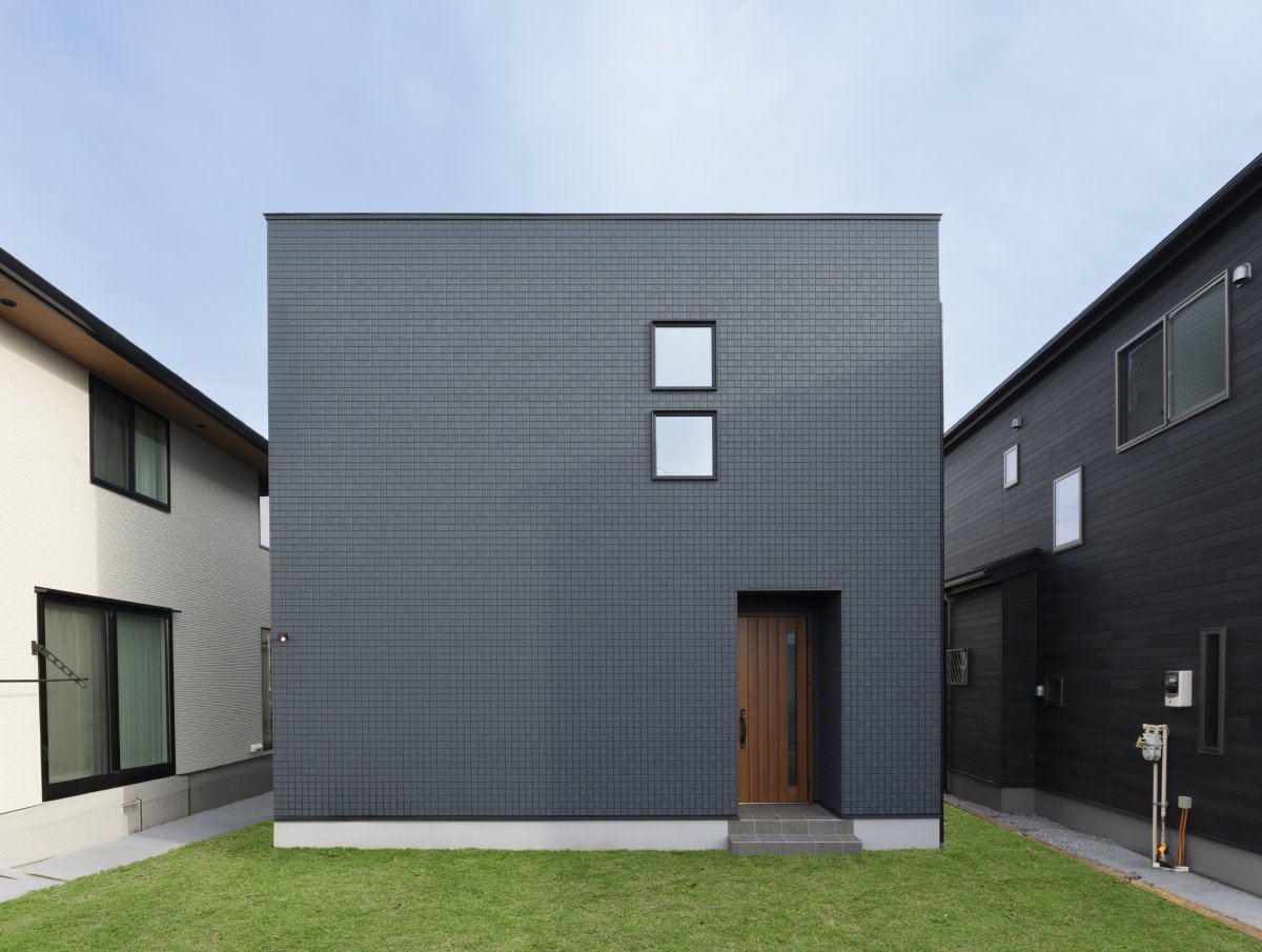 四方が住宅に囲まれているため、窓を高い位置に設置し、外からの視線に配慮した設計に。 -