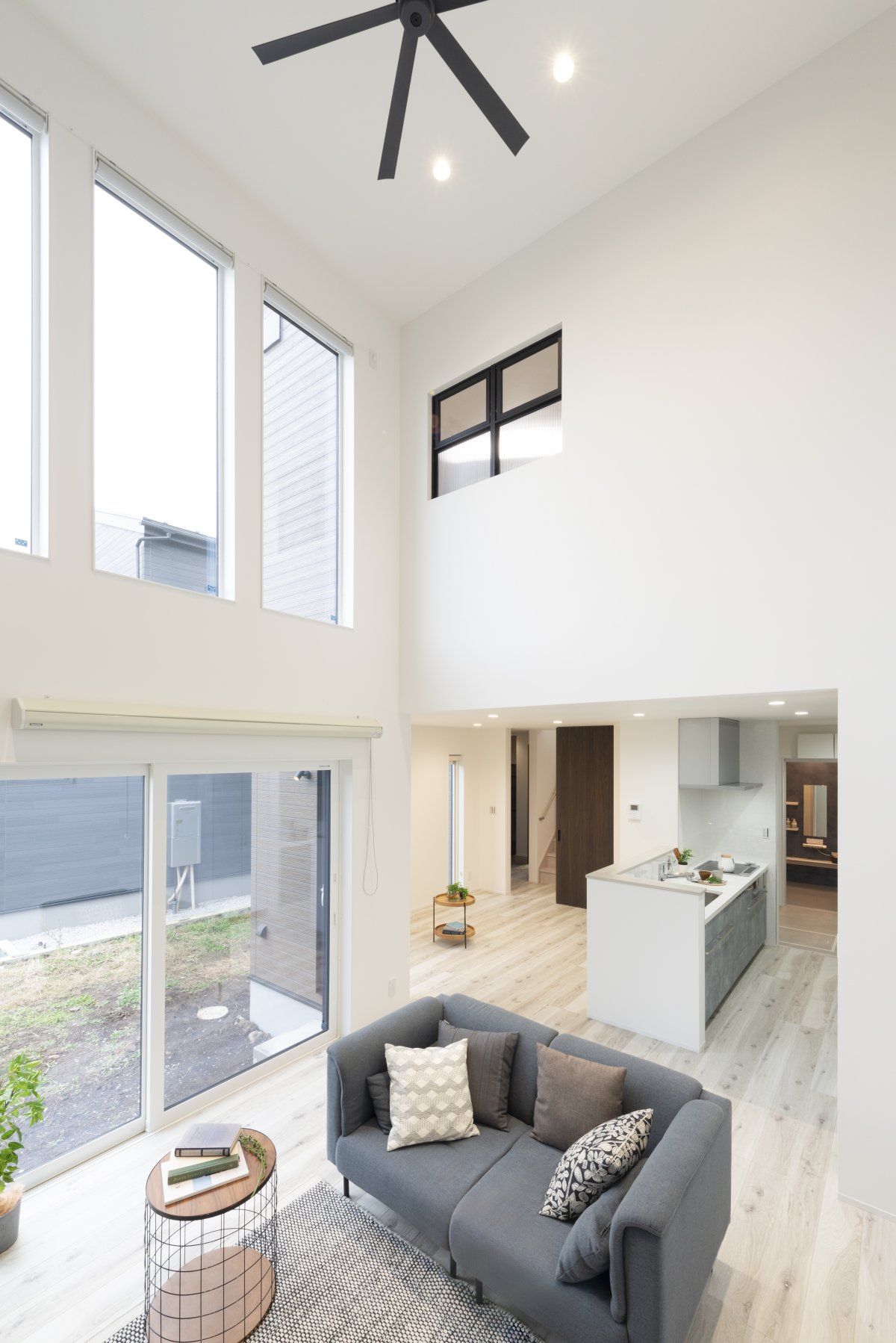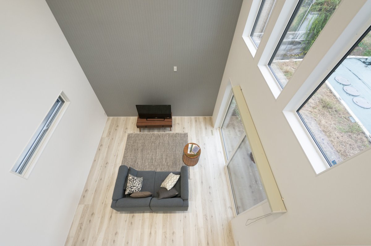 リビングには約8畳の吹き抜けと大きな窓。