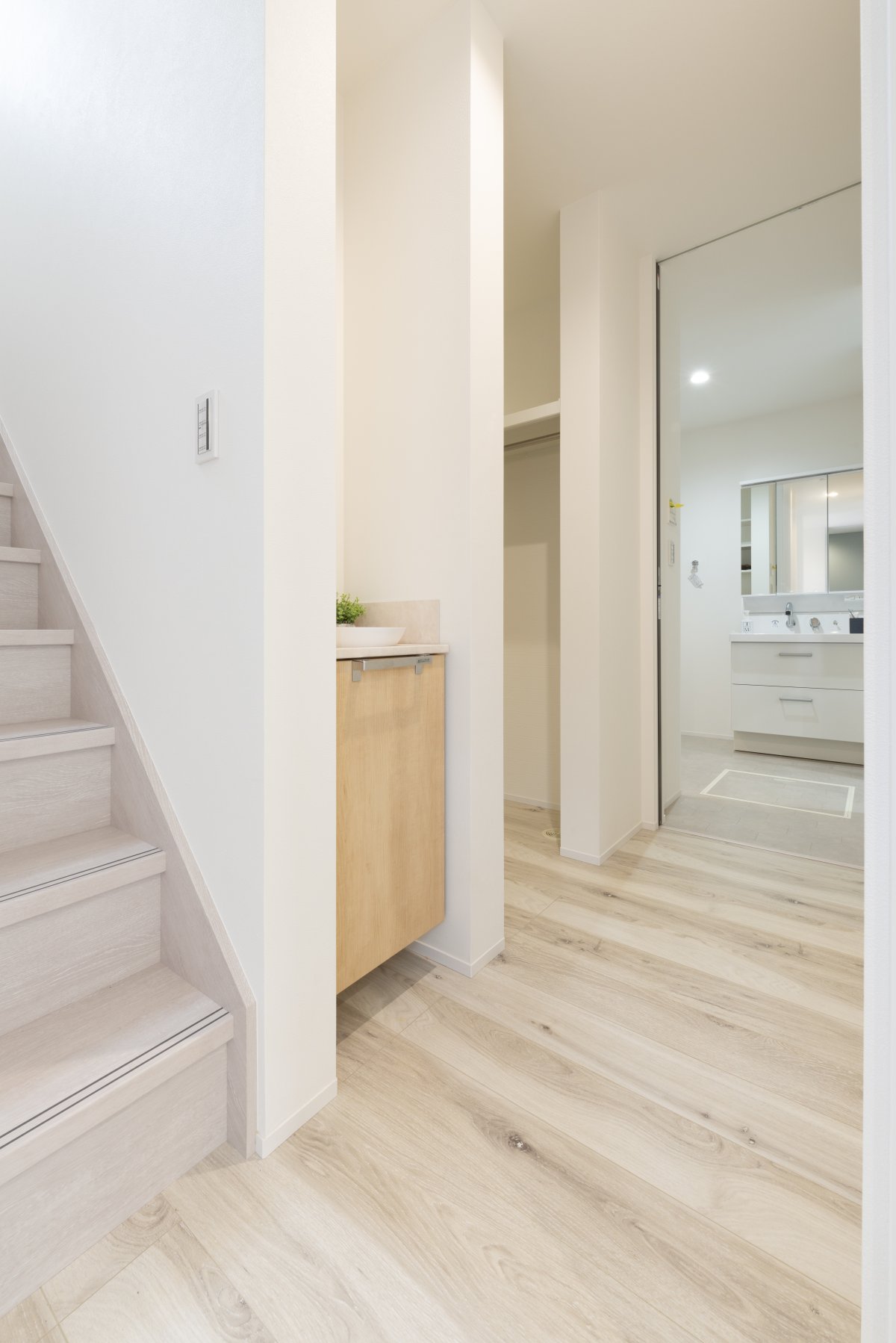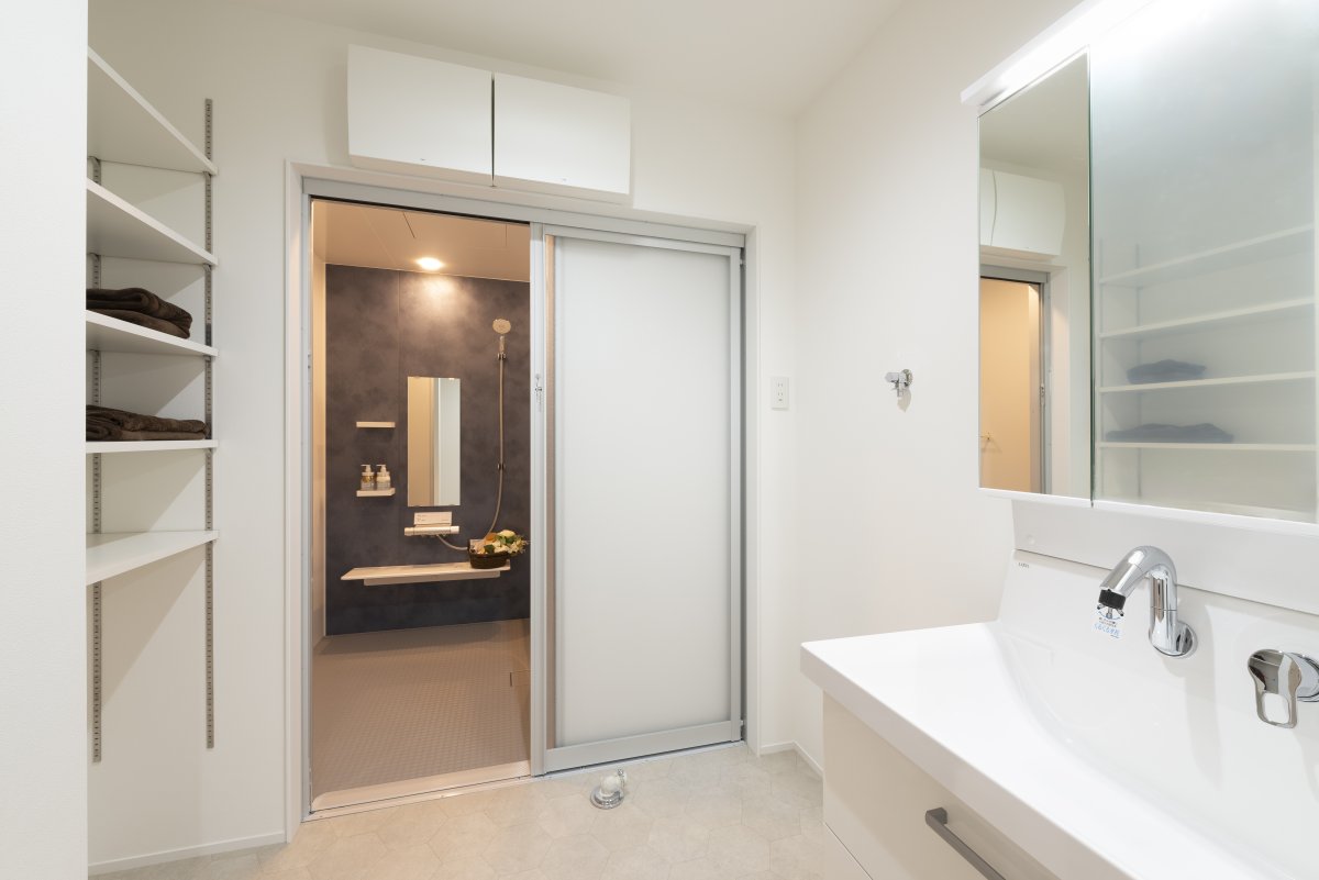 帰宅後は、手洗い場・ウォークインクローゼットからお風呂場まで一直線の動線なので、清潔かつストレスフリーに生活することが可能。