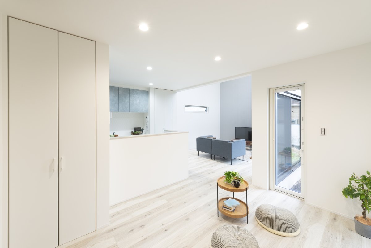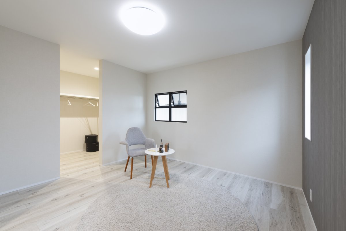お昼の時間帯に、1番日光が入るように間取りを設計しているため、暖かく・照明を点けなくても明るい居室となります。