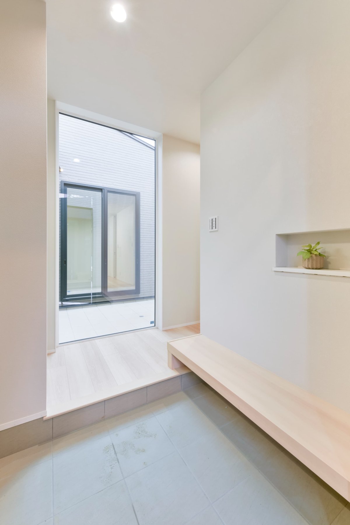 玄関ドアを開けると、目の前には中庭がお出迎え。