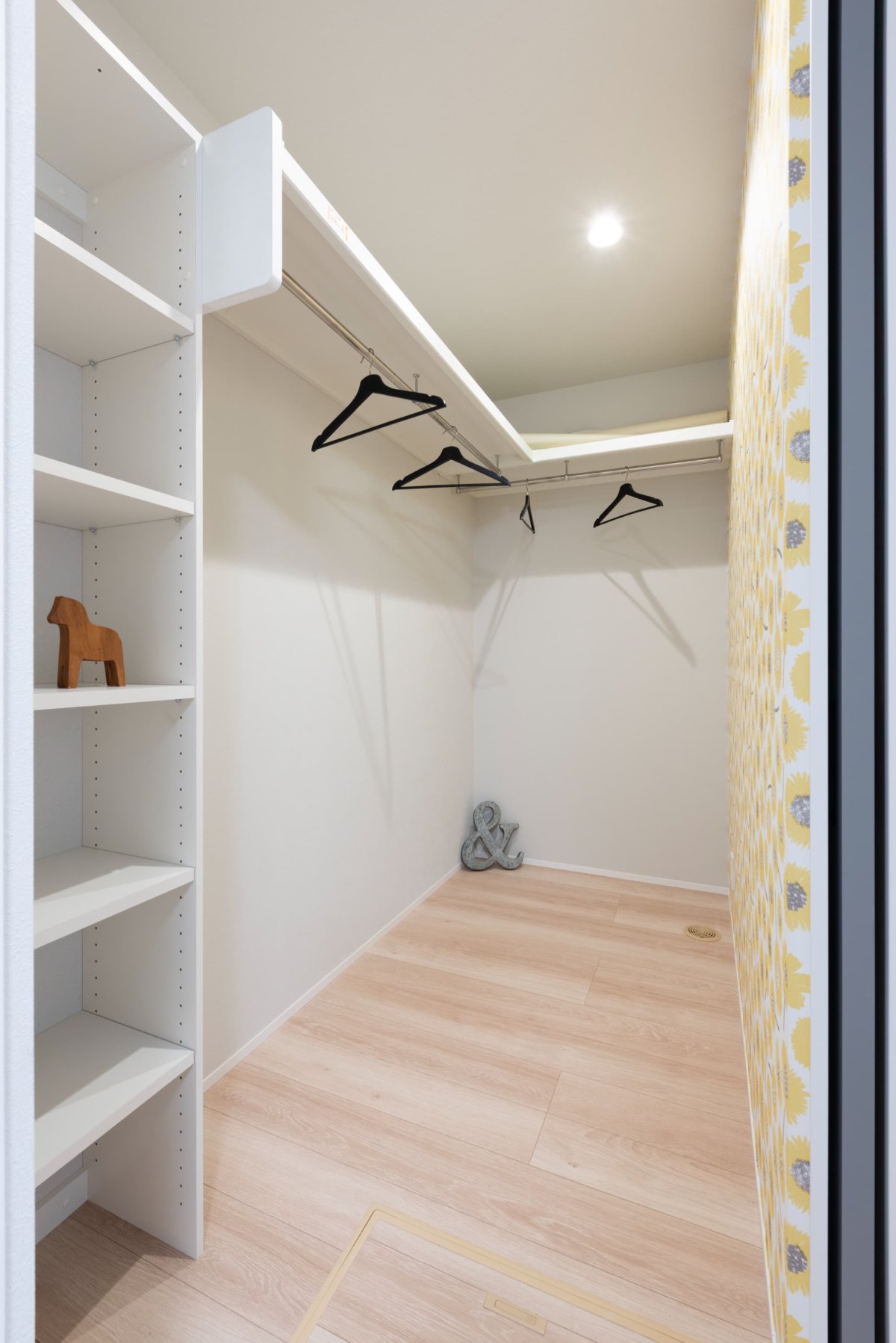 お花柄のアクセントクロスが可愛らしい約2.3帖のWIC。