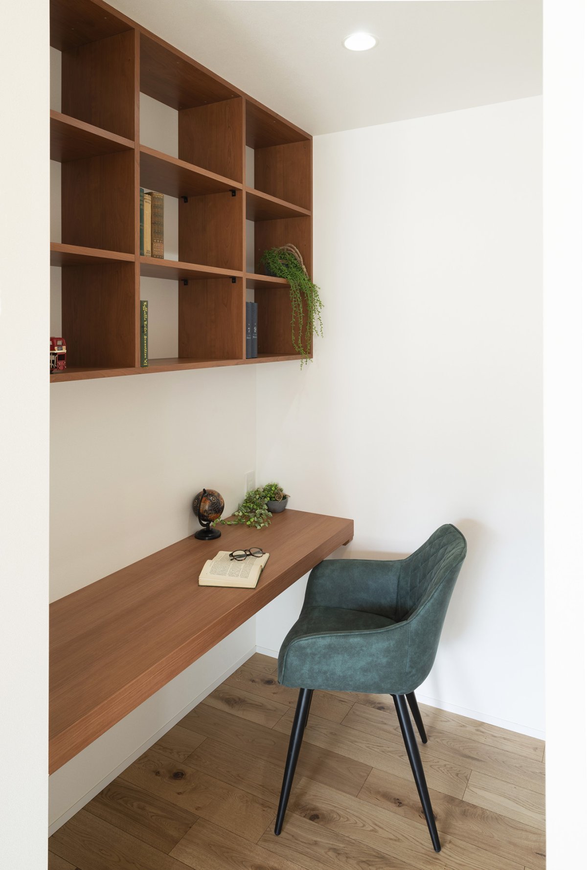 書斎スペースはリビングわきに設けて、プライベート感を生み出しつつ、家族の存在も感じられる空間に。