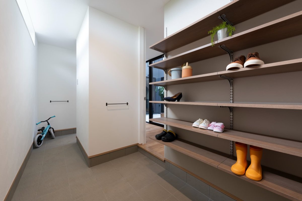 玄関土間収納は約4.3畳と高い収納力を備えています。
