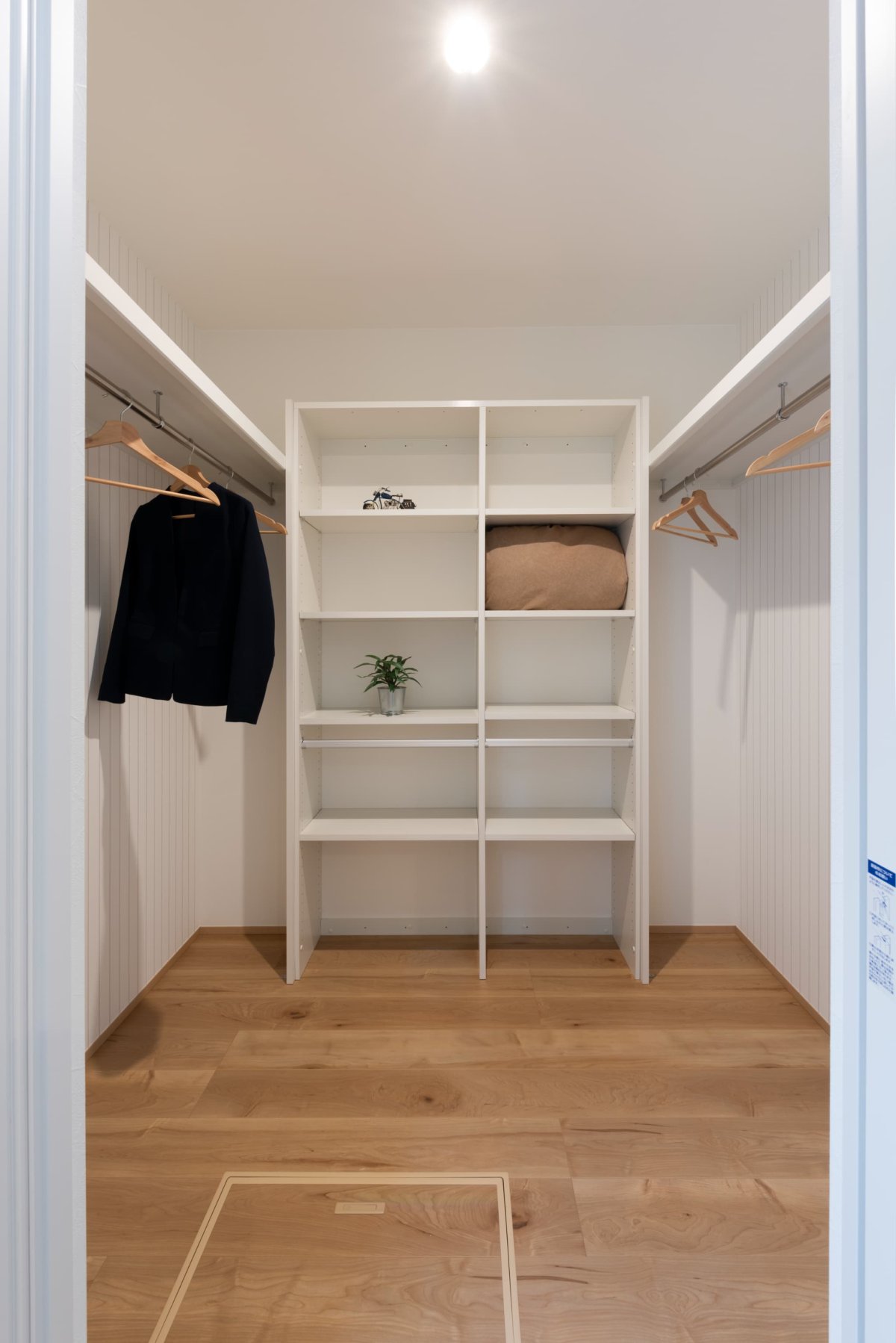 玄関土間収納を抜けると、アウターなどをかけておくことができる約2.5畳のウォークインクローゼット。