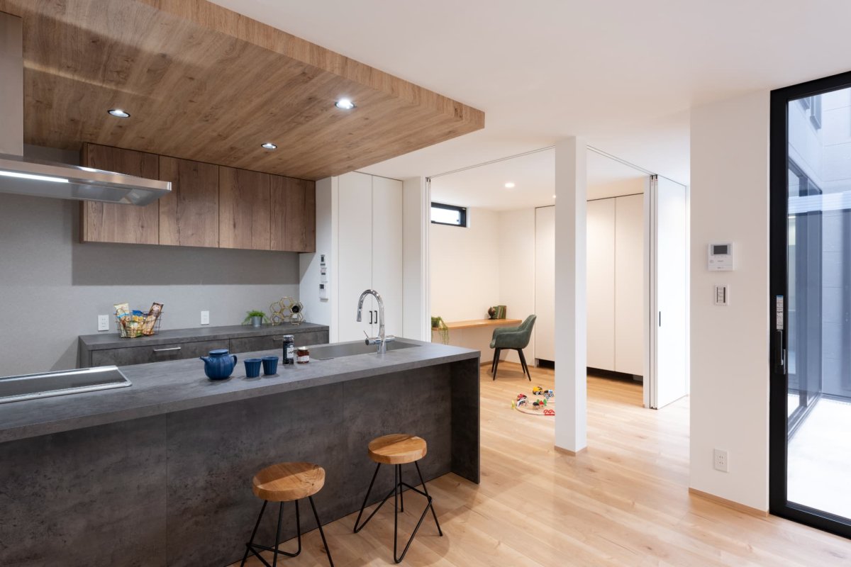 オーナー様のご要望でキッチンからでも目に届く位置にお子様の遊ぶスペースをつくりました。