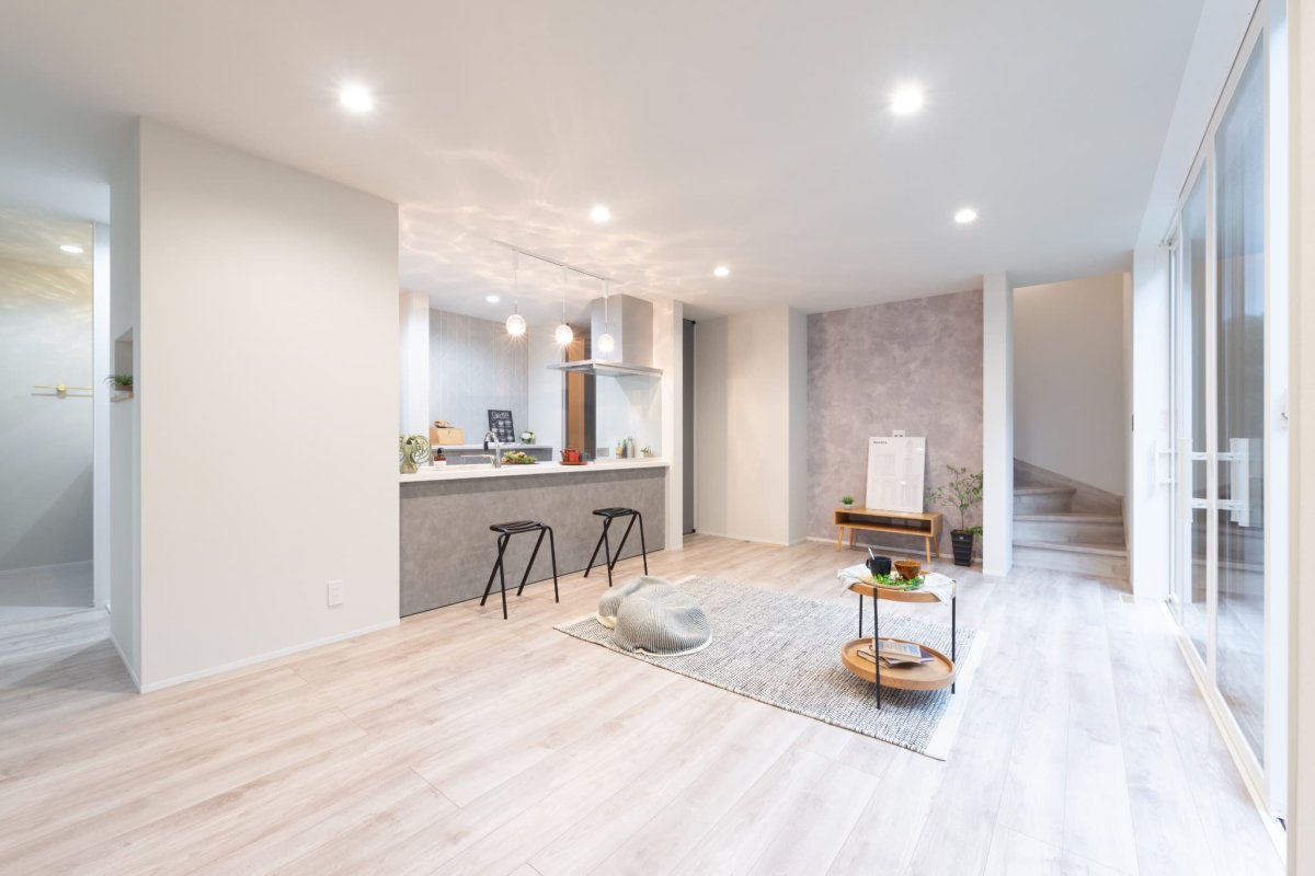 グレートーンを基調とした明るく落ち着いた雰囲気のLDK。
