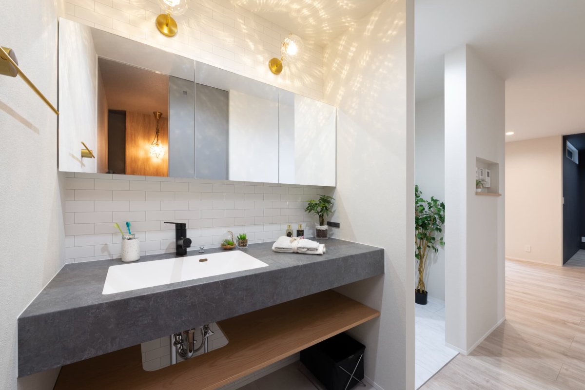 エレガントな雰囲気の造作風洗面台。