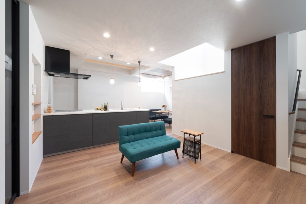スキップフロア+吹き抜けで開放感のある空間へ。