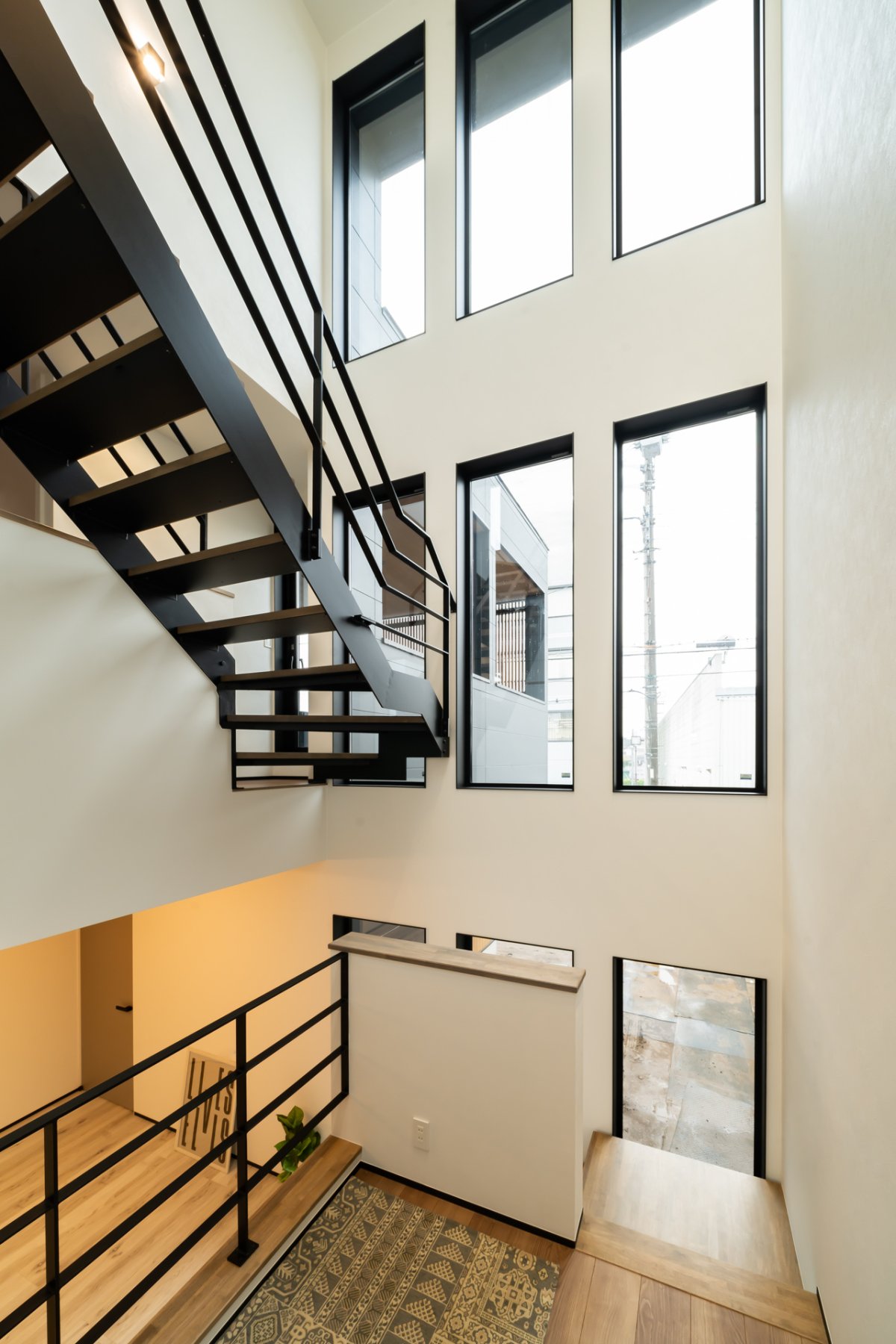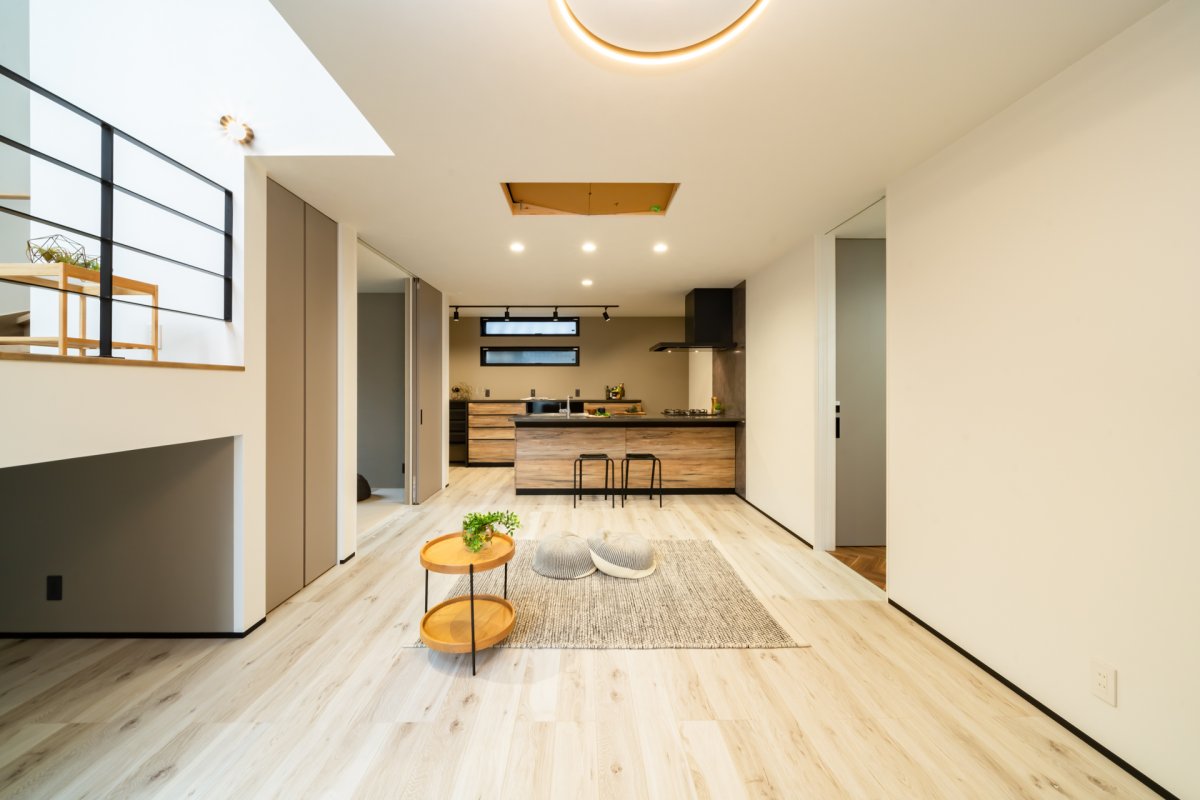 構造計算に基づく、強固なSE構法で、3階までのダイナミックな吹き抜けと中二階を実現。