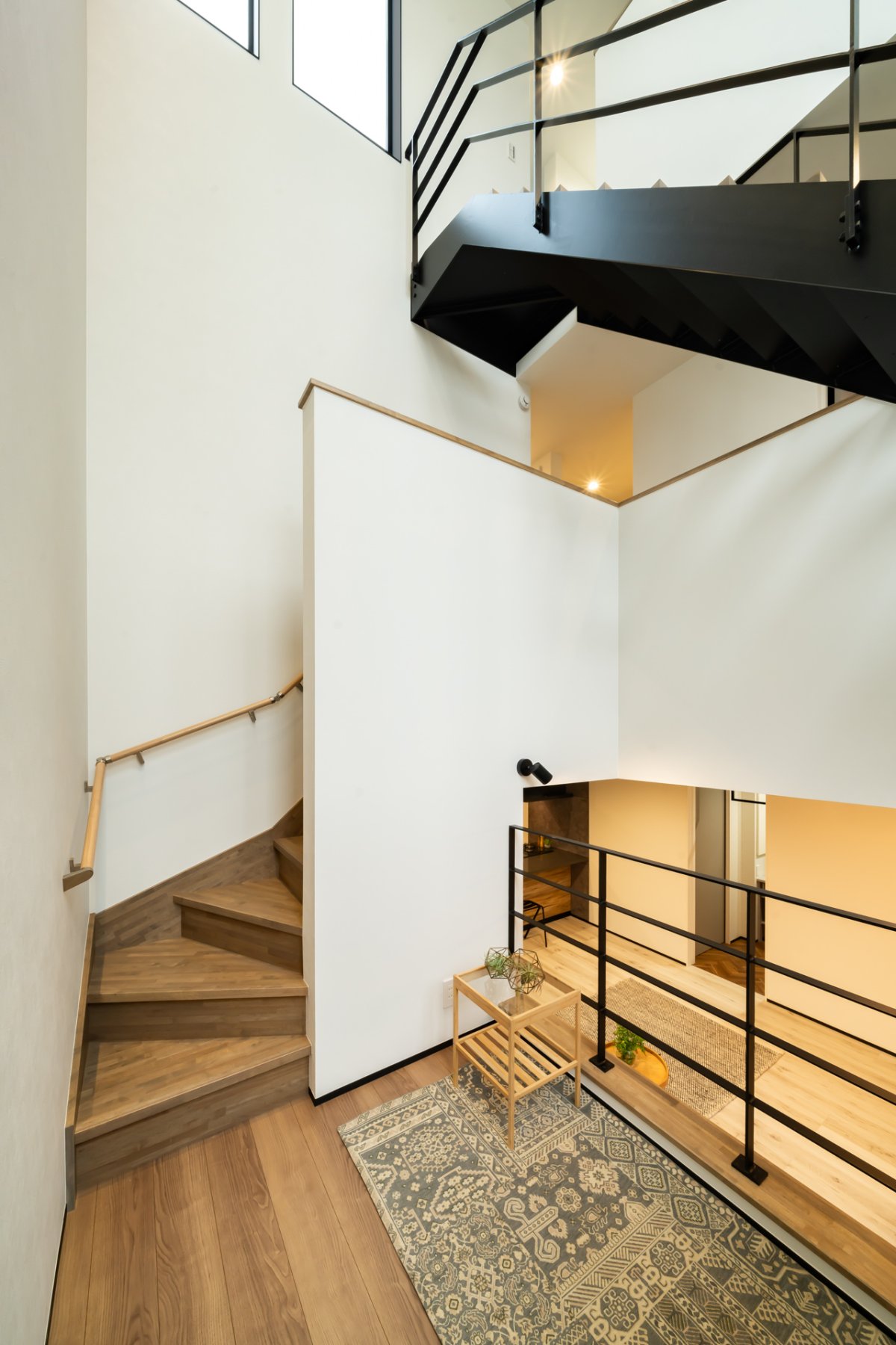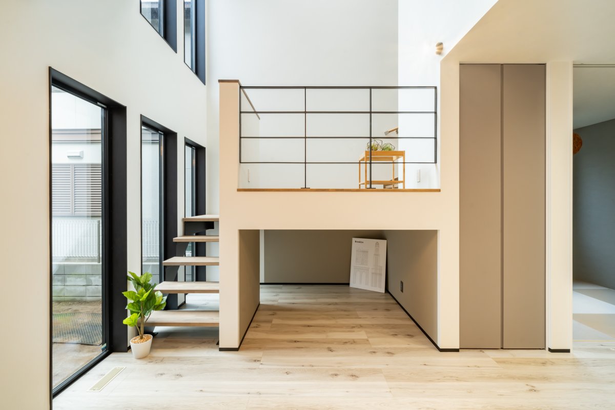 中二階のフリースペースはアイアン手すりで抜け感をプラス。